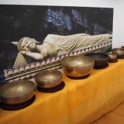 Entspannende Klangmassage mit tibetischen Klangschalen, chinesischen Gongs, Zimbel, Glocke, Monocord, Regenmacher und Ocean Drum. Die Klangschalen werden nach einer bestimmten Reihenfolge auf dem Körper aufgelegt und bespielt, durch die Klänge und Vibrationen der Instrumente werden sie sanft auf eine innere Klangreise geführt.